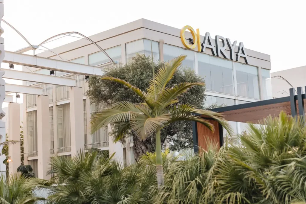החזון של אריא הוא ליצור חוויה בינלאומית, כזו שפורצת את גבולות המוכר. התפיסה הזו מתחילה כבר בכניסה למתחם: שער מונומנטלי ומרשים מוביל את האורחים לאורך אמת מים מרהיבה, היוצרת תחושה של כניסה לעולם אחר, קסום ומעורר השראה. העיצוב האדריכלי משלב בין מוטיבים גיאומטריים נקיים לבין חומרים חדשניים כמו "תחרת בטון" מהפנטת, ברזל ועץ, המעניקים למקום מראה דרמטי ויוקרתי.